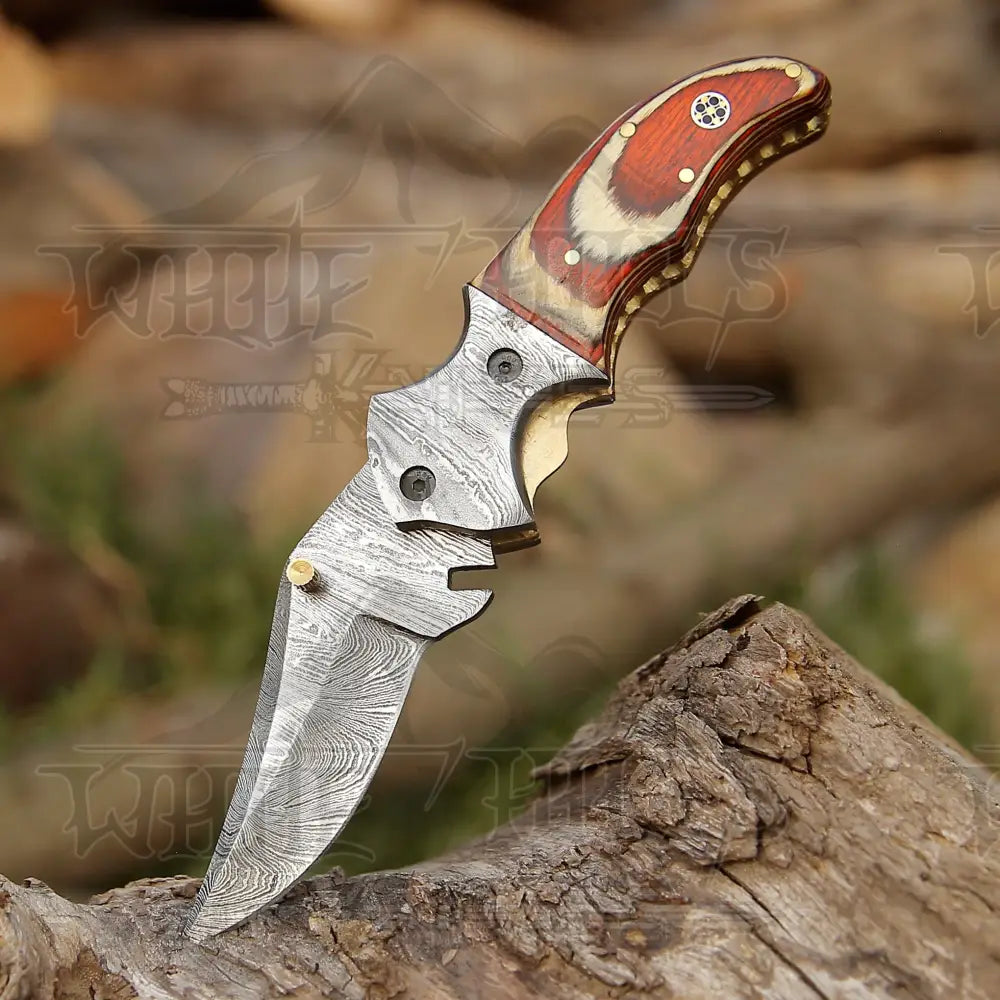 7" Handmade Forged Damascus Pocket Folding Knife - Pakka Wood Handle - Damascus Bolster WH 3535